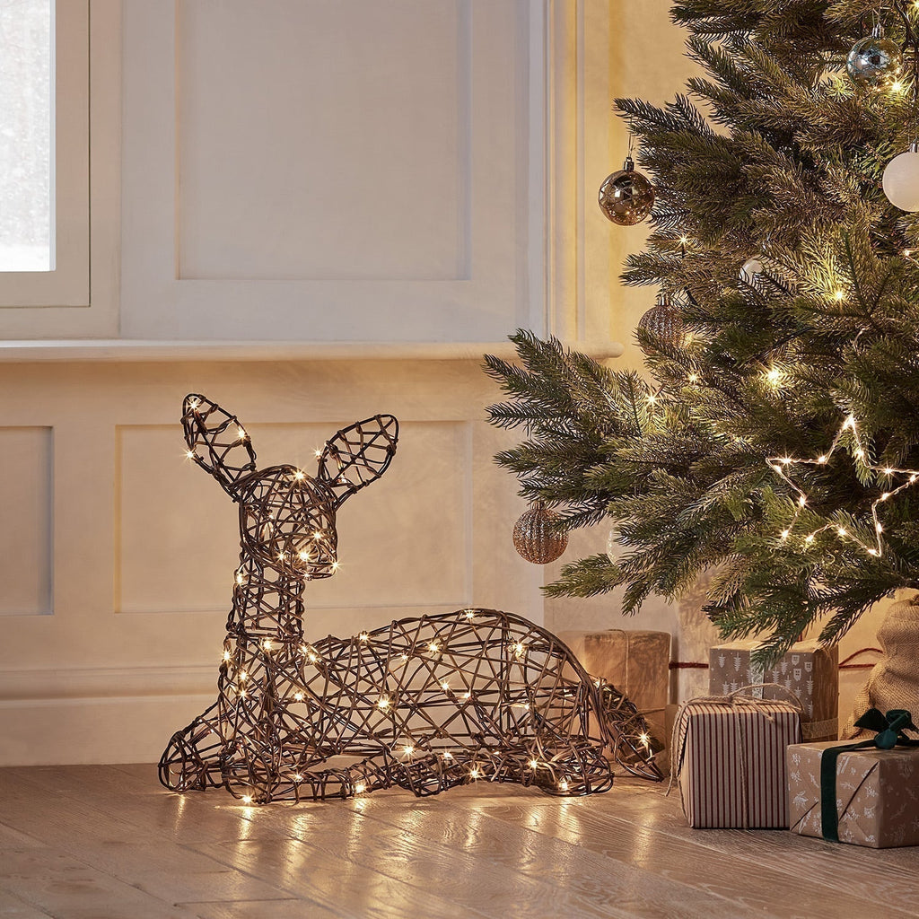 Adicione um pouco de diversão festiva ao seu jardim de inverno com nossa figura de Natal de alpaca! Completo com uma sela multicolorida e chapéu de Papai Noel, este personagem de Natal certamente adicionará charme à sua exibição. Com 78 cm de altura, é iluminado por 70 LEDs brancos quentes para adicionar um brilho brilhante e mágico ao seu jardim. Ótima para estilizar na sua varanda e ao redor da porta da frente com outras figuras de Aqueça os corações de todos os seus convidados neste Natal com o nosso encantador cervo Studley. Esta figura exclusiva foi primorosamente desenhada com base em fulvo real para torná-la o mais natural e autêntica possível. Envolto à mão em vime sintético marrom durável e iluminado por 80 LEDs brancos quentes colocados à mão, este jovem cervo é perfeito para ficar em varandas ou iluminar gramados para um toque especial de magia festiva. Com um revestimento à prova de intempéries e um suporte de chão para estabilidade extra, seu fulvo festivo é adequado para uso interno e externo e fica ótimo com estilo sozinho ou com o resto de nossa família de renas Studley. Para iluminar, basta conectar usando o cabo de 8 m e escolher o temporizador opcional de 6 horas para um brilho automático no mesmo horário todas as noites.